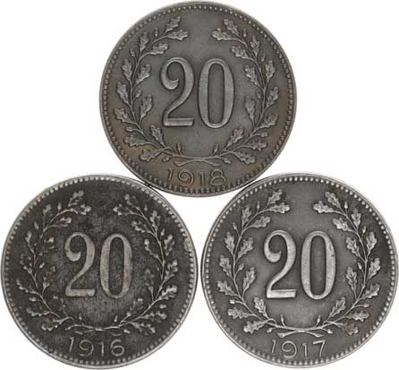 | 2010. | 20 hal. 1916, 1917, 1918 vše b.zn. - Fe 3 ks | 0-1 | 150,- | --.- |