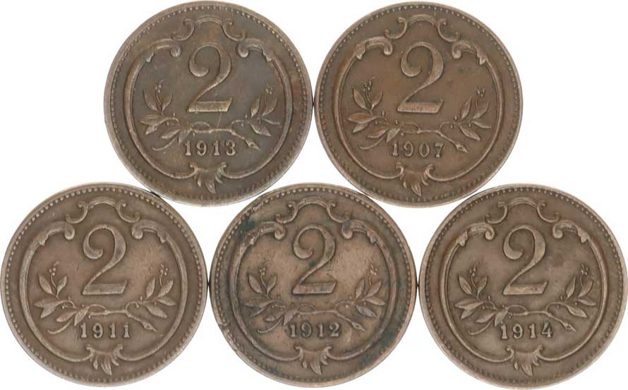 | 2058. | 2 Fillér 1893, 1896, 1898 vše KB; +2 hal. 1896(2x, 1909(2x), 1910