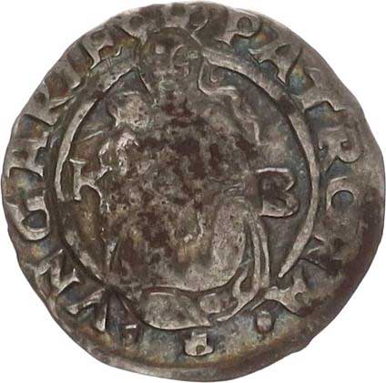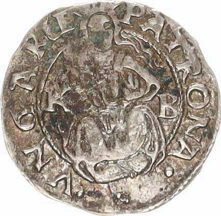 653. | Denár 1551 K-B var.: letopočet mezi tečkami, opis:PATRONA .*.UNG