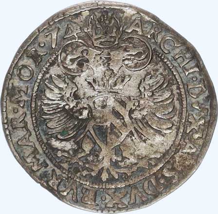 MAXI. II. DE. G. RO. IM. S. AV. GE. R. HV. B. REX / ... MAR. MOR. 74 1,938 g zbytky patiny |