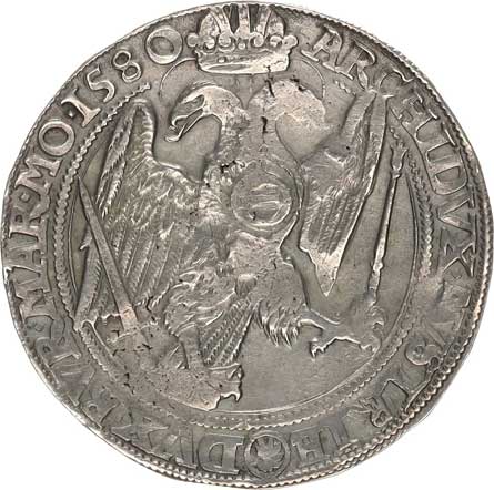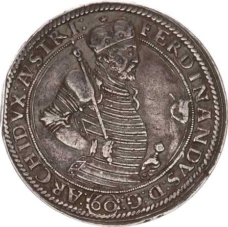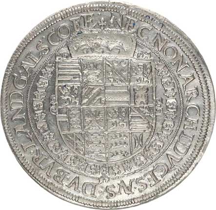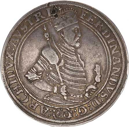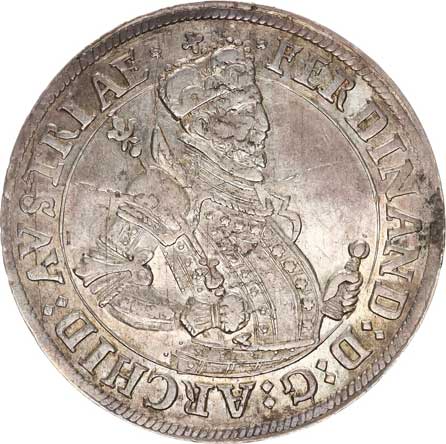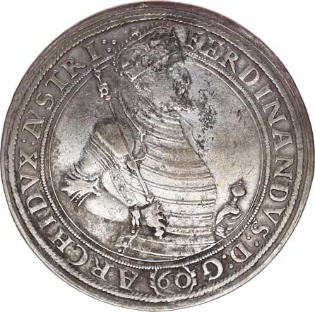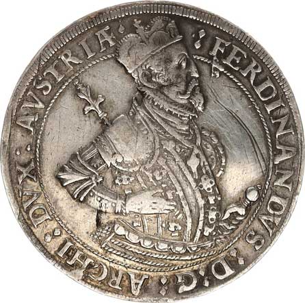 a hladký kruh, opis: FERDINANDVS:D:G - ARCHIDVX:AVSTRI trojtečka / ornamenty kolem erbu, rozděl. zn. dvojtečky 24,45 g |