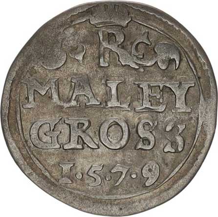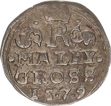 691. | Malý groš 1579, K.Hora-Šatný HN 2b (tečky v dataci 1 5.7.9)