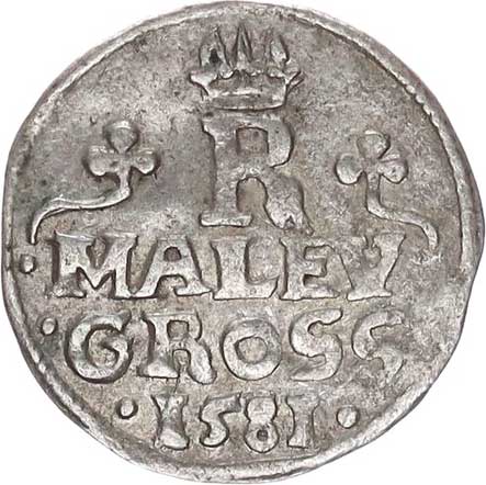 690. | Malý groš 1579, K.Hora-Šatný, líc bez opisu HN 1a/1 "RR"