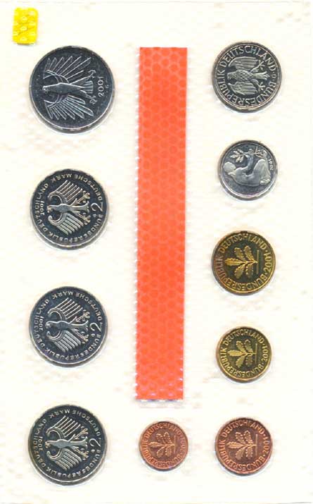 | 3659. | Ročníková sada mincí 2001 minc. D (1, 2, 5, 10, 50 Pf., 1, 5,