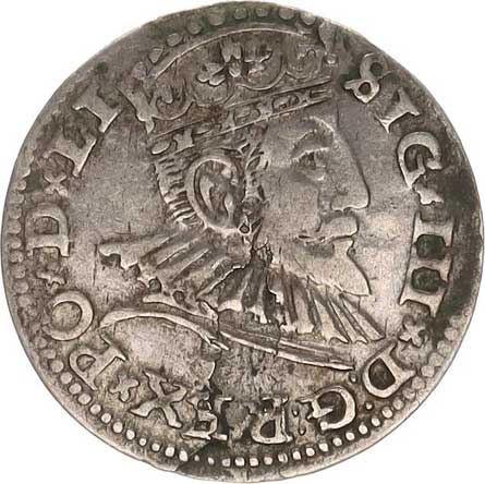 | 4075. | III groš 1597 Riga, Wulf - var.: poprsí přerušuje opis mezi D - +