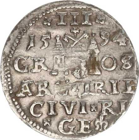 | 4064. | III groš 1594, Riga-Wulf opis: SIG+III+D+G+REX+PO+D+LI / před G