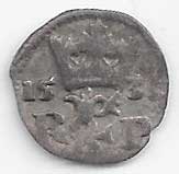 | 84. | Bílý peníz 1579 jednostranný, Č. Budějovice, Schonfeld, MKČ:465