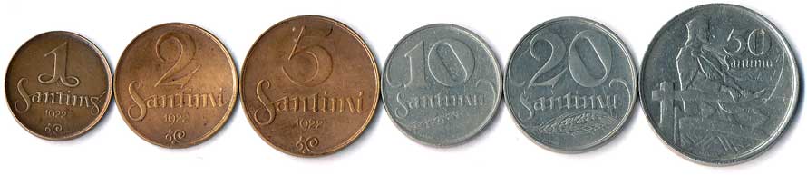 | 869. | 1, 2, 5, 10, 20, 50 Santimu, rok 1922, 6ks | 1-1- | 200,- | --.- |