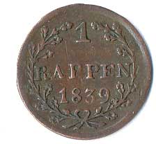 | 973. | 1 Rappen 1839, ražba bez oddělovacího kruhu kolem opisu a věnce (Av,Rv) | 1/1 | 200,- | --.- |