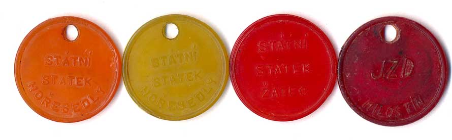 | 1216. | JZD Všetaty, světlý okr, JZD Kolešovice, červená, JZD Lašivice, nažloutlá,