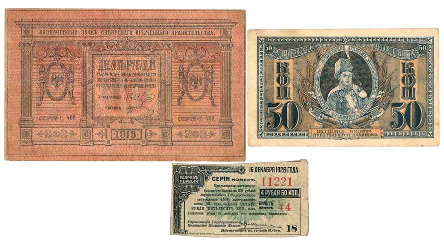 | 2132. | 50 Kopějek, 4 Ruble 50 Kopějek, 10 Rublů, neurčeno, 3ks | - | 60,- | --.- |